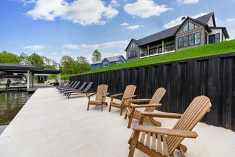 Wake each morning to the peaceful setting of this custom lakefront home on the shores of Lake Sara, with water views and surrounding natural landscape. Enjoy mornings on the covered deck overlooking the lake. Inside, the home offers 22-foot vaulted ceilings with custom exposed cedar beams, Andersen windows and doors, and abundant natural light throughout. The main living area connects to a well-designed kitchen featuring quartzite countertops, a large island, premium appliances, and space for gathering and entertaining. The primary suite is a spa-like retreat, featuring custom walnut cabinetry, a double vanity, soaking tub, and large windows that bring in natural light and views of the surrounding landscape. Bedrooms are generously sized; two upstairs rooms feature exposed beams. The finished walkout lower level includes additional bedrooms, a full bath, family room, game room, and storage. It opens to a covered porch with a gas fireplace. Outdoor living is a standout feature, with a covered 32-foot upper deck and an expansive waterside concrete patio lined with seating areas. The private dock, waterside patio and covered boat slip provide easy access to boating, fishing, and time on the lake. The property sits on over half an acre and includes upgraded mechanical systems, a three-car oversized attached garage, an extended driveway, a fenced dog run, and space for a future in-ground pool.